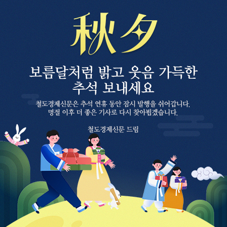 철도경제신문은 추석 연휴(10월 3~9일) 동안 잠시 발행을 쉬어갑니다. 돌아오는 10일자 뉴스레터(192호) 역시 임시휴간합니다. 명절 이후 더 좋은 기사로 찾아뵙겠습니다. 풍성하고 행복한 한가위 보내시길 바랍니다. 감사합니다. |