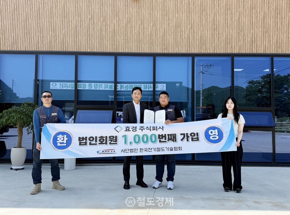 사단법인 한국전기철도기술협회 법인회원이 1000개사가 됐다. 협회 설립 27년만이다. 협회는 1000번째 법인회원으로 등록한 효경주식회사(경남 남해군 소재)에 방문해 회원증을 직접 전달하고, 법인 회원 가입을 축하했다.