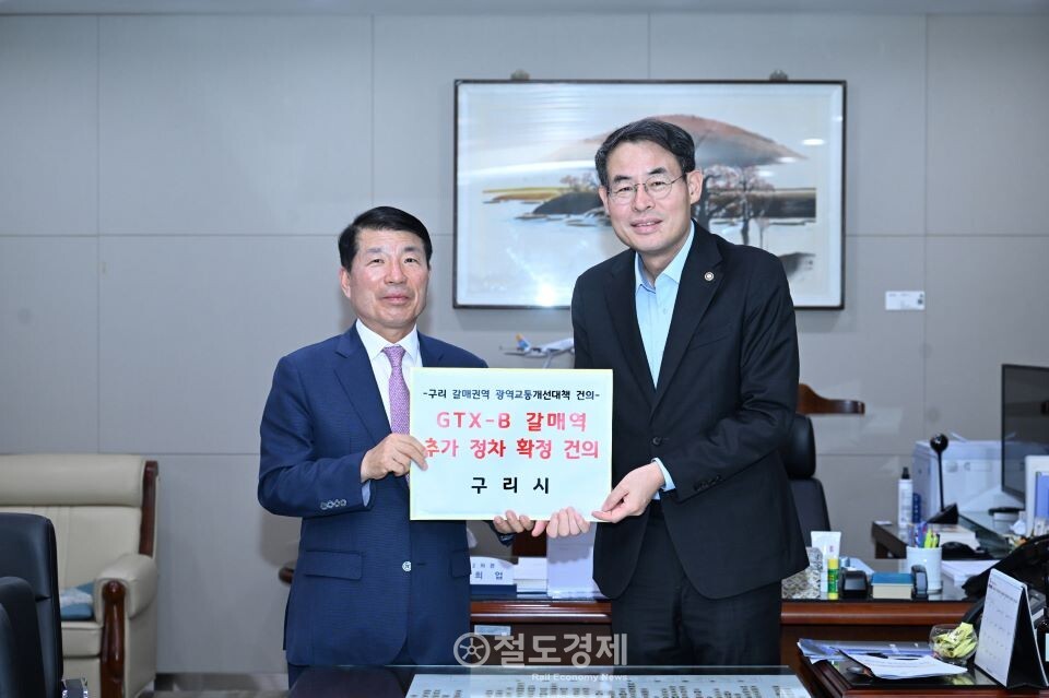 구리시는 15일 백경현 시장이 세종청사 집무실에서 강희업 국토부 2차관을 만나 'GTX-B 갈매역 추가 정차'의 조속한 확정을 요청했다. 백 시장은 "GTX-B 갈매역 추가 정차는 교통난을 근본적으로 해소할 수 있는 유일한 해법이다"고 강조했다. |