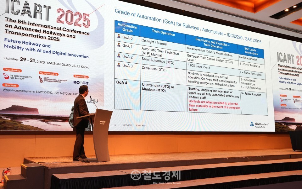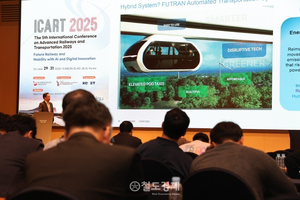 | | | 한국철도학회는 29일부터 3일간 메종글래드 제주에서 국제학술대회인 ICART 2025(International Conference on Advanced Railways and Transportation 2025)를 개최했다. 'AI와 디지털 혁신을 통한 미래 철도와 모빌리티'를 주제로 열린 ICART 2025에는 25개국에서 약 300여 명이 참석하고, 약 170여 편의 논문이 발표됐다.  특히 AI와 디지털을 활용한 인프라 관리, 안전성 향상, 운영 플랫폼 등 해외 각국의 최신 연구 성과를 소개해 눈길을 끌었다. |