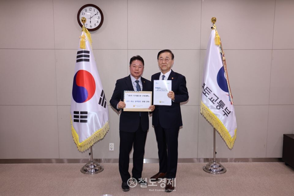 전라남도의회는 임지락 도의원(더불어민주당, 화순1)이 지난 3일 세종 정부종합청사를 방문해 김윤덕 국토부 장관을 면담하고, 제5차 국가철도망 구축계획에 '광주~화순 광역철도' 반영을 적극 요청했다고 밝혔다.