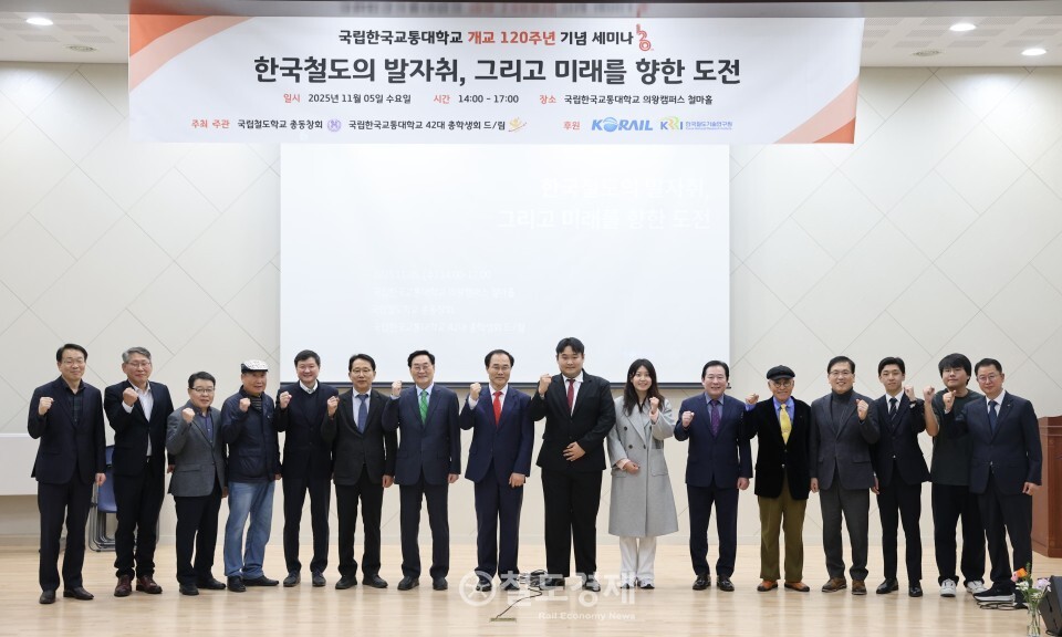 국립한국교통대학교는 5일 의왕캠퍼스 철마홀에서 '한국철도의 발자취, 그리고 미래를 향한 도전'을 주제로 개교 120주년 기념 세미나를 개최했다. 이번 세미나는 국립철도학교 총동문회와 교통대 총학생회가 공동 주최하고, 한국철도공사(코레일)와 한국철도기술연구원이 후원했다.