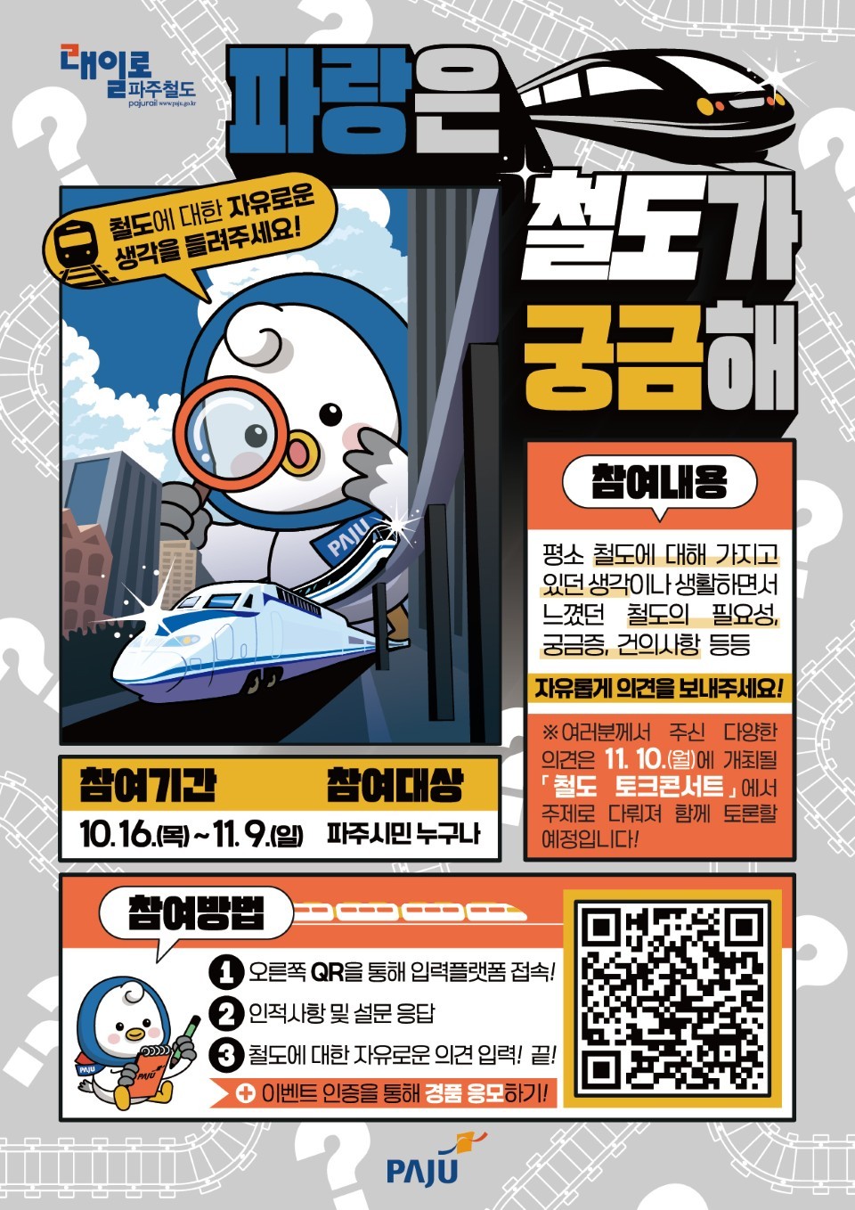 파주시가 오는 10일 파주 임진각에서 '파주철도 토크콘서트'를 개최한다. 일방적인 전문가 발표 형식의 토론회나 행사가 아닌, 실제로 철도를 이용하는 시민의 목소리를 담아, 시민과 함께 핵심 철도사업을 추진해 나가겠단 취지다.