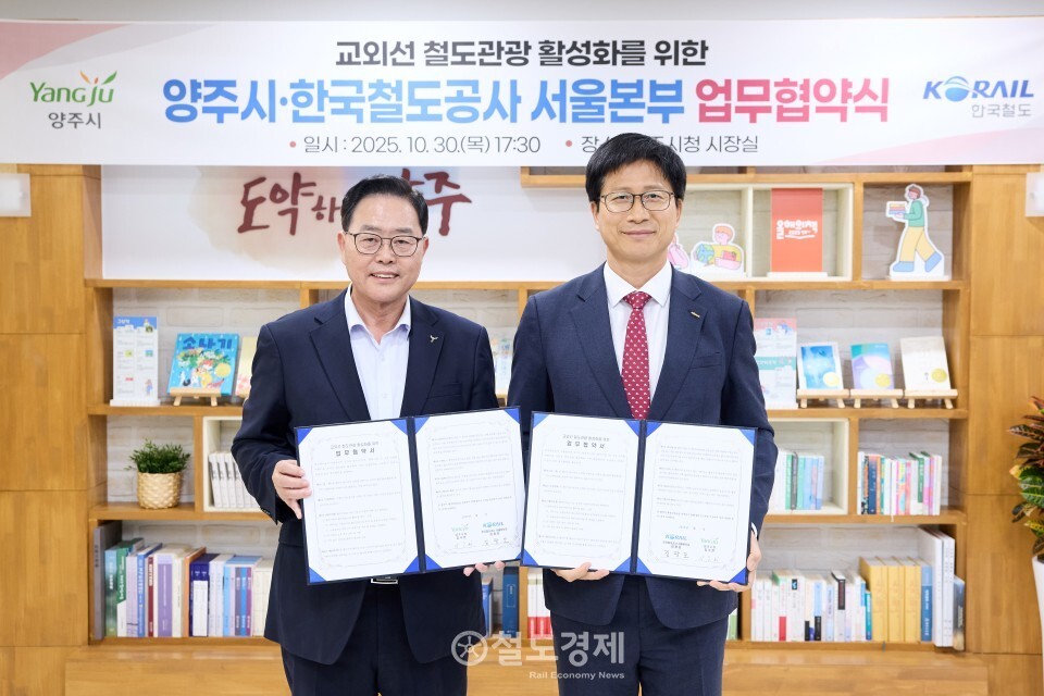 코레일 서울본부와 양주시가 교외선 철도관광 활성화를 위한 업무협약(MOU)을 체결했다. 양 기관은 교외선 주변 관광지와 연계한 철도여행상품을 공동으로 발굴·개발 등의 활동으로 국내 철도여행 활성화와 지역경제 활성화에 기여할 방침이다.