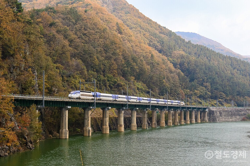 [열차한컷] 삼탄유원지를 스치는 KTX… 가을빛 제천의 철도 풍경