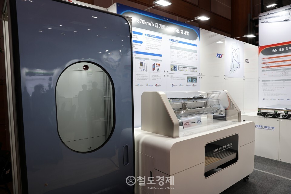 23일 경기 의왕 한국철도기술연구원 오명홀에서 '370km/h 고속철도 차량 핵심기술 연구성과 발표회'가 열렸다. 이날 성과발표회에선 우리나라 고속철도 차량 개발 역사를 소개하고, 이번 국가 R&D 개발 성과를 설명했다. 또 올해 11월부터 착수한 '400km/h급 초고속열차 핵심기술 개발' 계획도 발표했다. 행사장에는 이번 R&D를 통해 개발한 핵심 성과물도 함께 전시했다.