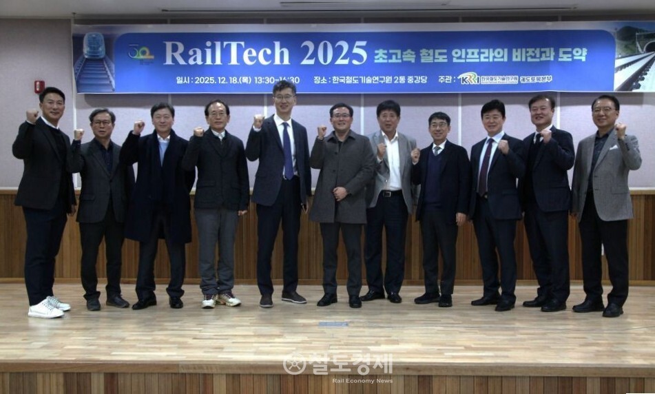 한국철도기술연구원 궤도토목본부는 18일 철도연 2동 중강당에서 '초고속 철도 인프라의 비전과 도약'을 주제로 개발성과와 기술로드맵을 발표하는 'RailTech 2025'를 개최했다. 이날 본부는 초고속철도 시대를 대비한 미래형 철도 인프라 전략을 소개하며 시속 400㎞급 고속철도를 대비한 AI 기반 궤도 설계, 디지털 유지관리 기술 등을 공개했다.