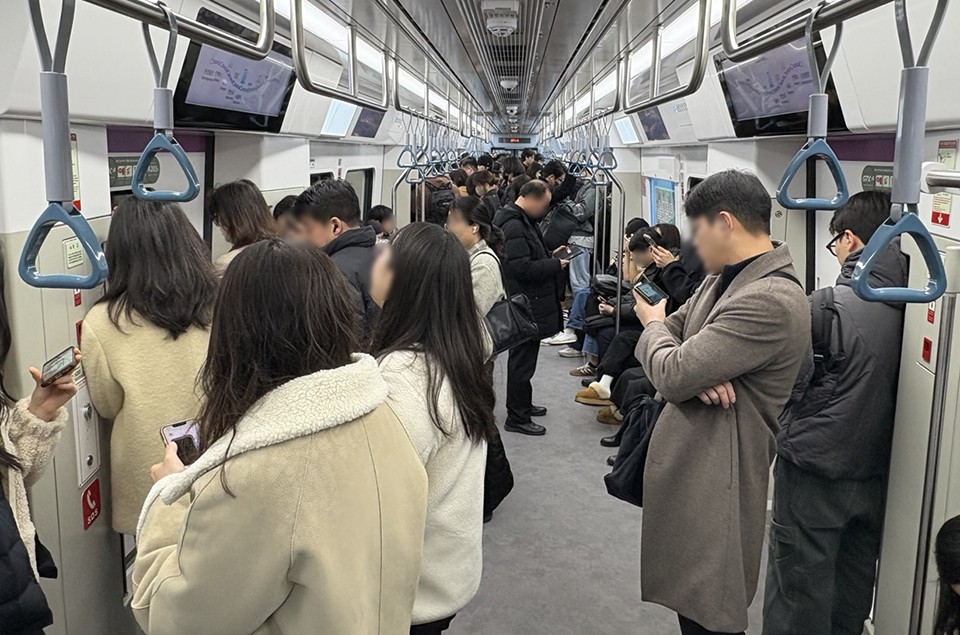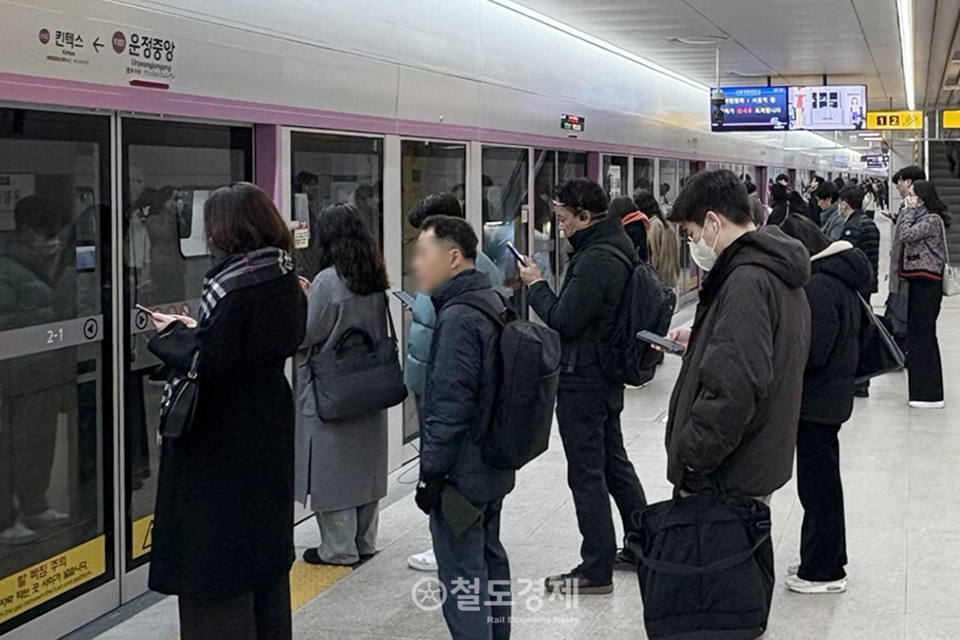 ์ง๋ํด 12์ 28์ผ ๊ฐํตํ GTX-A ์ด์ ์ค์-์์ธ์ญ ๊ตฌ๊ฐ ์น๊ฐ์ด ๊ฐํ๋ฅด๊ฒ ์์นํ๋ค. ํต์ ์ด์ฉ๊ฐ๋ค์ด ์๋ก์ด ๊ตํต์๋จ์ ์ ์ํ๋ ์๊ฐ์ด 2~3๋