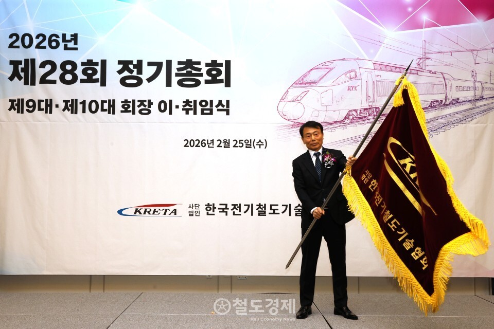 사단법인 전기철도기술협회는 지난달 25일 서울 용산에 소재한 나인트리 프리미어 로카우스 호텔에서 '2026년 제28회 정기총회 및 회장 이·취임식'을 개최했다. 올해 회원 권익 증진, 전문기술인력 양성, 철도안전 전문기관 역할 강화 등 중점 운영 목표를 세우고, 전기철도 기술 발전과 안전 강화에 주력한다.